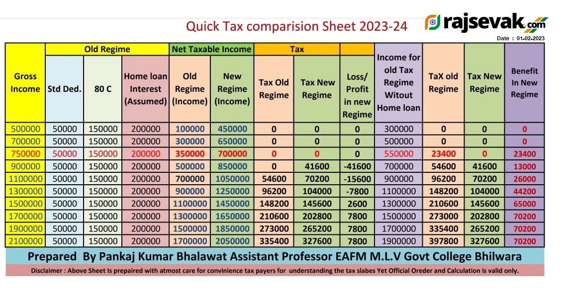 - Incometax Quick Comparision Sheet for 2023-24 Dt. 01-02-2023