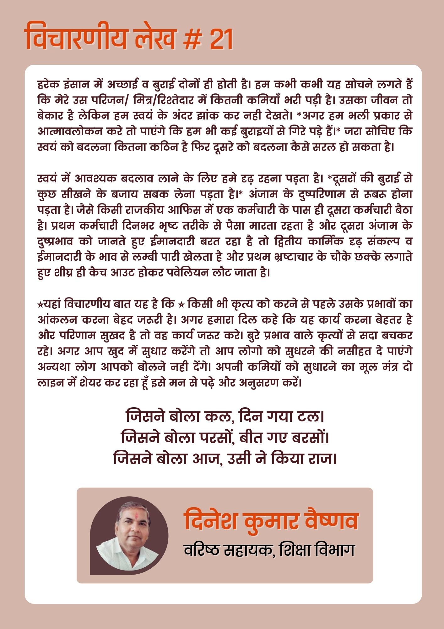 Story By Dinesh Kumar Vaishnav